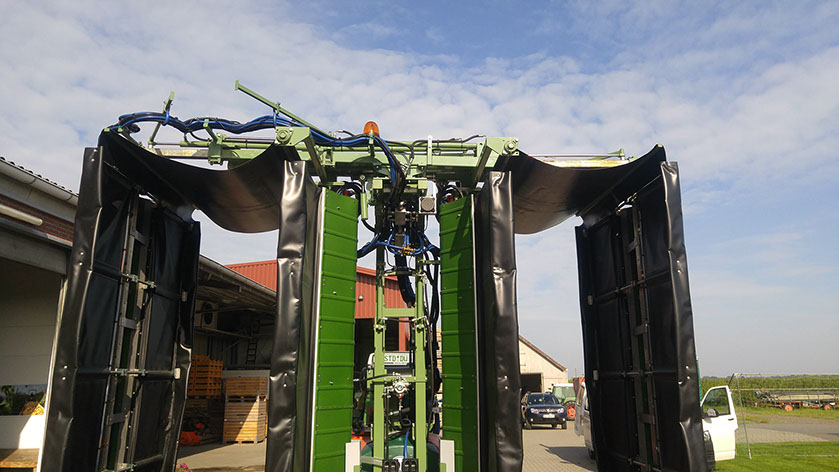 Auf dem Versuchsbetrieb der ESTEBURG sowie auf je einem integriert und ökologisch wirtschafteten Obstbaubetrieb des Alten Landes wurde durch die Operationelle Gruppe die praktische Eignung von tunnelartigen Sprühgeräten getestet. Durch die beteiligten Obsterzeuger konnten dabei wichtige Erkenntnisse zur Praktikabilität gewonnen werden. Die fachliche Begleitung und Bewertung der biologischen Wirksamkeit oblag innerhalb der Operationellen Gruppe den drei beteiligten Institutionen an der ESTEBURG. Über drei Jahre wurden Auswirkungen der tunnelartigen Pflanzenschutztechnik auf die Bekämpfungssicherheit diverser Schaderregern (z.B. Läuse) und Schadpilze (z.B. Apfelschorf) im Vergleich zu konventionellen Pflanzenschutzgeräten ermittelt.