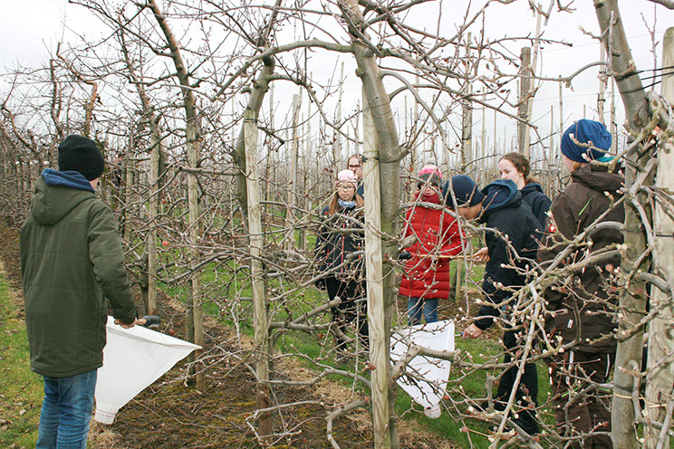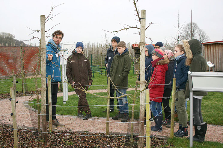 Über den Tag durchliefen sie die verschiedenen Abteilungen und bekamen eine Übersicht über die vielen Berufsbilder, die hier unter einem Dach vereint sind. Dabei lernten sie von den Grundlagen, die den Erwerbsobstbau im Alten Land ausmachen, von Fruchtqualitäten, ökologischen und integrierten Produktionsweisen und deren Schlüsselelementen und von Gerätetechnik im Pflanzenschutz.